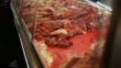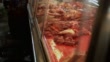 Metragem de 4K DCI da carne crua fresca da carne no mercado - Vídeo de acervo 4K