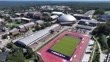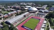 Aerial view of University of Connecticut basketball arena - Vídeo de acervo 4K