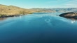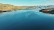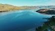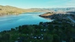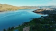 Morning views as the sun rises over Lake Chelan in Washington state, USA. Drone point of view.