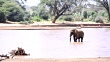 African Elephant drinking / cleaning on Ewaso Nyiro River at Samburu / Buffalo Springs at wild in Kenya