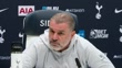 ENFIELD, ENGLAND - FEBRUARY 5: Ange Postecoglou, Tottenham Hotspur manager, speaks on French striker Mathys Tel ahead of their second leg of the Carabao Cup semifinal against Liverpool during a press conference at Tottenham Hotspur Training Centre on February 5, 2025 in Enfield, England. (Footage by Niche Sport Media via Getty Images)
