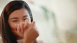 Asian woman using moisturize hand cream on their daily life in the living room at home