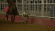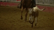 Calf runs ahead of horse at rodeo - Vídeo de acervo HD