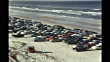 1954 MONTAGE Cars parked along beach and car race at Daytona International Speedway, Daytona Beach, Florida, USA