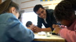 Professora alegre conversando com aluna negra fazendo suas perguntas durante aula de robótica com seus amigos - Vídeo de acervo 4K