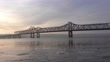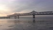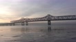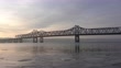A bridge spans over the icy Illinois River in Peoria, Illinois