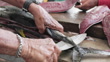 Limpando um peixe na praia - Vídeo de acervo 4K