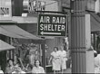 1951: SYRACUSE, NEW YORK: WS Clinton Square w/ traffic FG, Soldiers & Sailors' Monument (Masonic Park), Syracuse Savings Bank, Gridley Building BG. VS Downtown cityscape, street, intersection, people walking, HA MS 'Air Raid Shelter' sign. Cold War