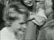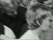 B/W 1968 close up PAN celebrities sitting around Maharishi Maresh Yogi outdoors / newsreel