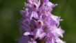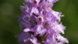Pan up, extreme close up shot of Common spotted orchid (Dactylorhiza fuchsii), South Downs