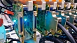 Computador e internet cabo placa de rede conectando os cabos de rede de switches - Vídeo de acervo 4K