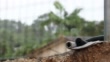Concrete sleeper retaining wall on housing development site showing earthworks and excavation shot in 4K during pouring rain
