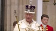 Coronation of King Charles Main events; ENGLAND: London: Westminster: Westminster Abbey:EXT / WETKing Charles III departs the Abbey wearing the Imperial State Crown, amd carrying The Sovereign's Sceptre with Cross and The Sovereign's OrbKing Charles III and Queen Camilla seated inside Gold State CoachCoach alongThe Mall:Various of processionPrince Louis of Wales waves from carriage - Princess Charlotte of Wales, Prince George of Wales; Prince William, Prince of Wales and Catherine, Princess of Wales also seen insideCrowds waveWestminster Abbey:Prince Harry, Duke of Sussex into carParliament Square / The Mall:Various of processionsPrincess Anne, Princess Royal on horsebackCarriage along as Prince Louis seenBuckingham Palace:Various as Gold State Coach returns to palaceVarious of troops in formation in garden and cheering SOTCrowds surge forward towards palaceVarious of King and Queen balcony appearanceRed Arrows over palacePrince Louis points as stood next to Princess CharlotteKing and Queen wave from balcony before returning to palace