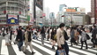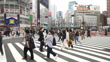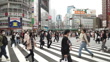 Multidão de pessoas atravessam a faixa de pedestres com tráfego de carros na rua comercial em Shinjuku, Tóquio - Vídeo de acervo 4K