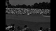 LS crowd wandering around on course at Augusta National Golf Club / VS American golfer Jimmy Demaret putting; sinking ball / LS American golfer Jim Ferrier and caddy walking through break in crowd onto green / MS Demaret standing with announcers and press on observation platform / Ferrier squatting with cigarette in mouth, lining up shot (crowd in background) / VS Ferrier putting several times; finally sinking ball