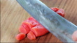 Cutting 'Myeongranjeot' (Salted pollack roe) with a knife - Vídeo de acervo 4K