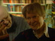 Dame Iris Murdoch (is suffering from Alzheimers disease) standing looking at camera with husband Professor John Bayley standing behind
