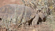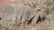 Very Old, Very Large Desert Tortoise (Gopherus agassizii) side view, eating during a drought year in the Mojave Desert.
