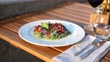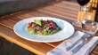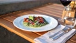 Detalhe do prato de jantar fino na mesa, nhoque com pesto - Vídeo de acervo 4K