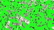 Hundreds of five dollar bills fall from the sky and gradually fill up the screen. The file has a chroma key background making it easy to use over other footage or as a transition.