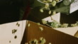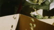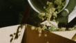 Brotos de maconha seca (Cannabis) giram por dentro e caem de uma máquina de corte em uma caixa de papelão em uma instalação de processamento interior (Cânhamo) - Vídeo de acervo 4K