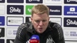 LIVERPOOL, ENGLAND - OCTOBER 5: Eddie Howe, Newcastle manager, speaks about Joelinton's performance after their English Premier League match against Everton during a press conference at Goodison Park on October 5, 2024 in Liverpool, England. (Footage by Niche Sport Media via Getty Images)