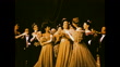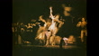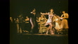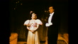 Ethel Merman performing on theater stage in the musical play "Annie Get Your Gun"; Merman singing and dancing with other actors in grand costumes