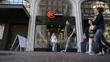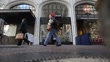 Exteriors and Signage of the RadioShack Corp logo is seen on a facade of a store in San Francisco, California, US, Wide shots of commuters walking past the entrance to a RadioShack in San Francisco, California, Shoppers wearing warm weather clothing walk past a RadioShack location in San Francsico, California