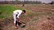 HD1080p: Young farmer of Indian ethnicity digging near green field located in rural India.