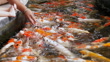 Father and son share a peaceful moment by the pond, the father gently feeding colorful koi fish as they gather.