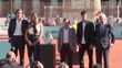 MADRID, SPAIN - APRIL 22: (COMPILATION) (L-R) Feliciano Lopez, Aryna Sabalenka, Jose Luis Martinez-Almeida, Carlos Alcaraz and Ignacio Garralda pose for photo during the presentation of Mutua Madrid Open 2024 at Plaza Mayor on April 22, 2024, in Madrid, Spain. (Footage by Europa Press via Getty Images)