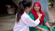 Médica indiana examinando uma paciente idosa rural com estetoscópio durante visita domiciliar na aldeia. - Vídeo de acervo 4K