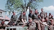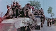 MONTAGE German Army soldiers driving in to surrender on armored personnel carriers and trucks, bringing sweethearts with them