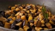 Frite berinjela com folhas de louro da baía, prato norma italiano - Vídeo de acervo 4K