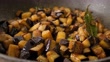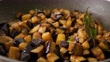 Cooking eggplant with bay laurel leaves, norma sicilian dish