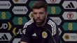 GARMISCH-PARTENKIRCHEN, GERMANY - JUNE 17: Grant Hanley, Scotland defender, speaks on whether his side has a point to prove following their 1-5 loss to Germany at UEFA Euro 2024 opener and ahead of their Group A match against Switzerland during Press Conference at Garmisch Olympia Stadium on June 17, 2024 in Garmisch-Partenkirchen, Germany. (Footage by Niche Sport Media via Getty Images)
