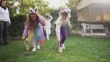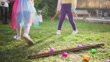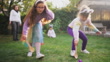 Grupo de crianças brincando de ovo e colher corrida ao ar livre - Vídeo de acervo 4K