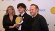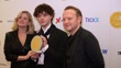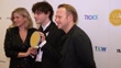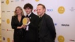 LONDON, ENGLAND - FEBRUARY 11: (L-R) Guest, Jack Wolfe and Michael Jibson inside the WhatsOnStage Awards 2024 Winners Room at the London Palladium on February 11, 2024 in London, England. (Footage by Mark Case/Getty Images)