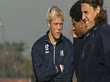 Hernan Crespo laughing during Chelsea FC training session, Eidur Gudjohnsen chewing gum in background, London, 07 Nov 03