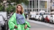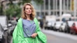 FRANKFURT AM MAIN, GERMANY - JULY 06: (SLOW-MO) Influencer Marie von den Benken, wearing green oversized pants, a green oversized coat and a blue-green shirt by Anja Gockel, a white bag by Polene Paris and white shoes, walks at Anja Gockel Show during the Frankfurt Fashion Week on July 6, 2021 in Frankfurt am Main, Germany. (Footage by Streetstyleshooters/Getty Images)