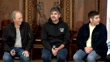 BARCELONA, SPAIN - NOVEMBER 19: (COMPILATION) Joan Manuel Serrat, Estopa members David Muñoz and Jose Manuel Muñoz, and Barcelona mayor Jaume Collboni attend the 'Barcelona amb Valencia' charity concert presentation at Barcelona City Hall on 19 November, 2024 in Barcelona, Spain. The Palau Sant Jordi will host on November 29th a solidarity concert for the benefit of the people affected by the DANA in the Valencian Community with the participation of Serrat, Estopa, Andrea Motis, Judit Neddermann and Lucia Fumero. The full price of the tickets will be donated to the Red Cross to help alleviate the effects of the tragedy. In addition, a "row 0" ticket is on sale in which people who cannot attend the concert can donate 1 euro for the cause. (Footage by Europa Press via Getty Images)