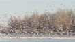 Large flock of Snow geese (Anser caerulescens) take off from lake, Squaw creek, Missouri, USA. (FKIB734R - Clip taken from series rushes - 22289)