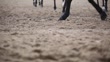 Low-angle view, close up (CU) horses hooves walking on dirt during a morning session at a training facility of the Sha Tin Racecourse, operated by Hong Kong Jockey Club, in Hong Kong, China, on Wednesday, Oct. 28, 2015, Trainers ride horses during a morning session at a training facility of the Sha Tin Racecourse, operated by Hong Kong Jockey Club, Trainers speak to stable boys during a morning session at a training facility of the Sha Tin Racecourse, operated by Hong Kong Jockey Club in Hong Kong