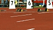 Masculino os corredores impulsionando-se do bloco de partida - Vídeo de acervo HD