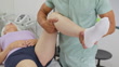 Terapeuta Asiática Madura Auxiliando Mulher Caucasiana Sênior com Avaliação da Flexibilidade do Quadril - Vídeo de acervo 4K
