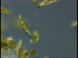 Microscopic view of Euglenoid protozoa moving around against blue background - Vídeo de acervo