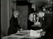 MOT 1949: MUSEUM OF THE CITY OF NEW YORK: Miss Seymour going through theatre posters CU Joe Jefferson poster. 'The Honor of the Family' w/ Otis Skinner (1926) theatre poster. 'The Constant Wife' w/ Ethel Barrymore (1926). 'Easy Virtue' w/ Jane Cowl (1926