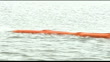 Louisiana: Mississippi River:Various views of reporter on boat as travelling down Mississippi river to seaWaves washing onto shore of South Pass beachReporter to camera as picks up clean sand PAN to Gulf of Mexico in distancePelican birds flying pastOil booms along edge of estuary protecting plant and bird life from possible slickLong shot and close view of displaced oil boom (displaced by tidal forces)BOAT POINT OF VIEW POV as along towards open sea of Gulf and oil rig seen in far distanceReporter to cameraBOAT POINT OF VIEW POV as back up along Mississippi Delta, oil booms in barge, various of oil tankers and fishing boats (good shots)Kerry O'Neil (Fisherman) interview SOTOil tank storageBurn off from oil refinery showing flame from chimney stack