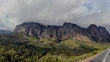 SLO MO panning shot of cloudy mountain pass/ Western Cape/ South Africa - Vídeo de acervo HD