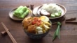 popular malaysian foods , curry noodle, kuih and nasi dagang